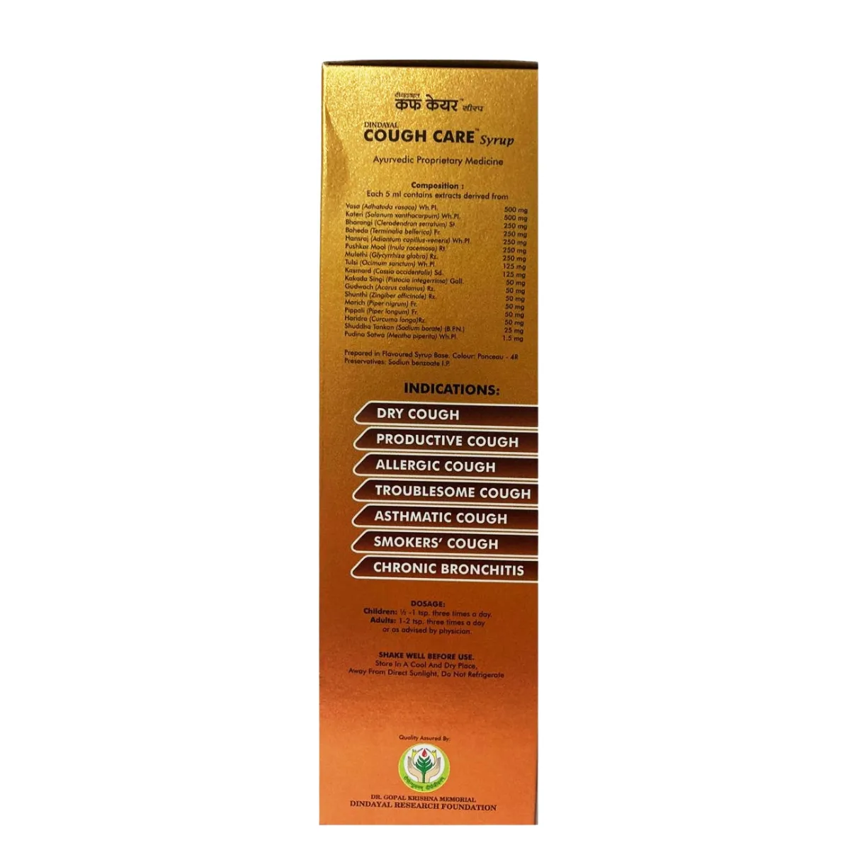 Dindayal Cough Care Syrup is a powerful herbal formulation that provides rapid and lasting relief from both dry and productive coughs. This non-narcotic remedy helps break the cycle of spasmodic coughing, clears the airways, and promotes easy expectoration. It soothes irritated mucous membranes and supports respiratory comfort without causing drowsiness. Ideal for acute and chronic upper and lower respiratory tract infections, it’s your trusted natural solution for effective cough care.