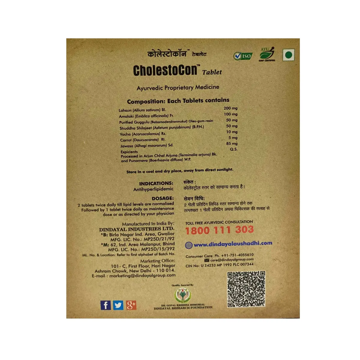 Key Ingredients– Lahsun, Purified Guggulu, Shuddha Shilajit, Amalaki, Jawasa