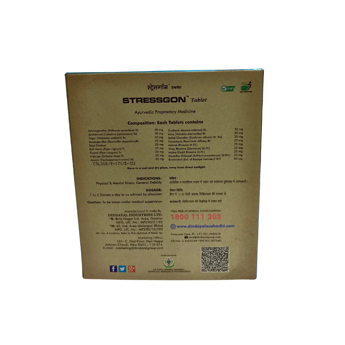 Dindayal Stressgon is specially formulated to help you cope with daily stress, strain, and fatigue. It supports your body’s natural balance by normalizing functions disrupted by chronic stress. These tablets help calm anxiety and nervousness, boost energy levels, reduce tiredness, and promote restful sleep. With regular use, you may feel more relaxed, energetic, and mentally clear. It’s a gentle way to enhance overall physical and mental well-being—so you can feel like your best self, every day.