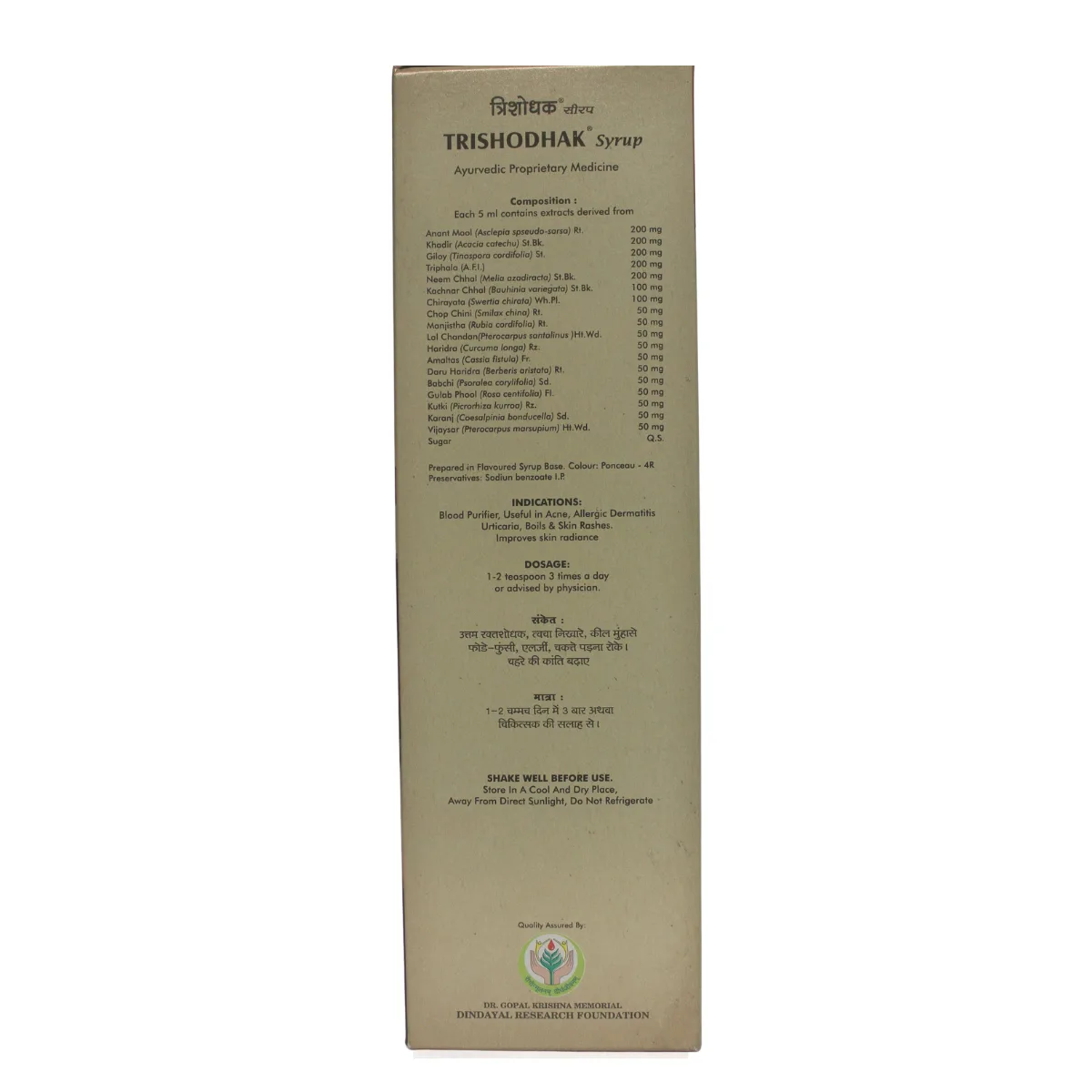 Dindayal Trishodhak Syrup is a natural blood purifier and skin tonic specially formulated for teenage girls and young women. It helps eliminate toxins and impurities from the bloodstream, offering quick relief from acne and promoting clear, glowing skin. Regular use supports a smooth, healthy complexion and helps prevent common skin infections, making it an ideal choice for holistic skincare from within.